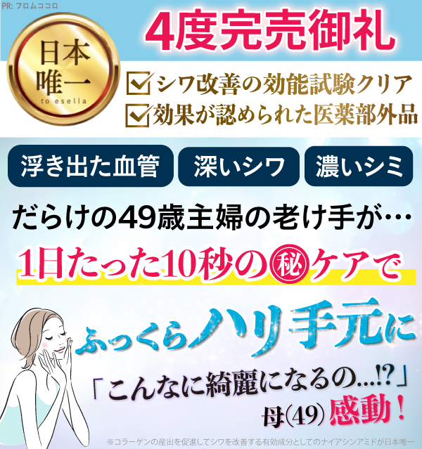 手って年齢が出るけど隠せない箇所で、老けて見られるのが嫌だったんですが、これのおかげで今では年齢より若く見られるようになり嬉しいです♪